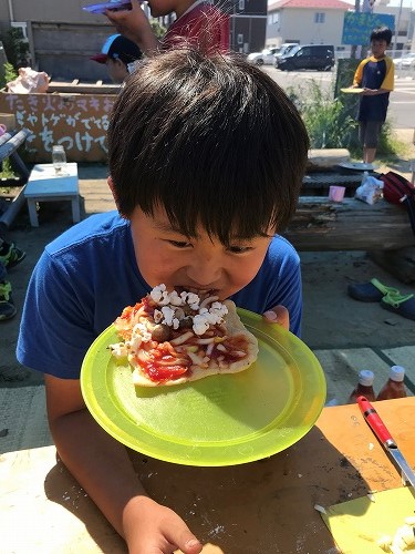外はサクッ、中はモチっとした自分の作ったピザに子ども達は大満足な様子でした!!!
