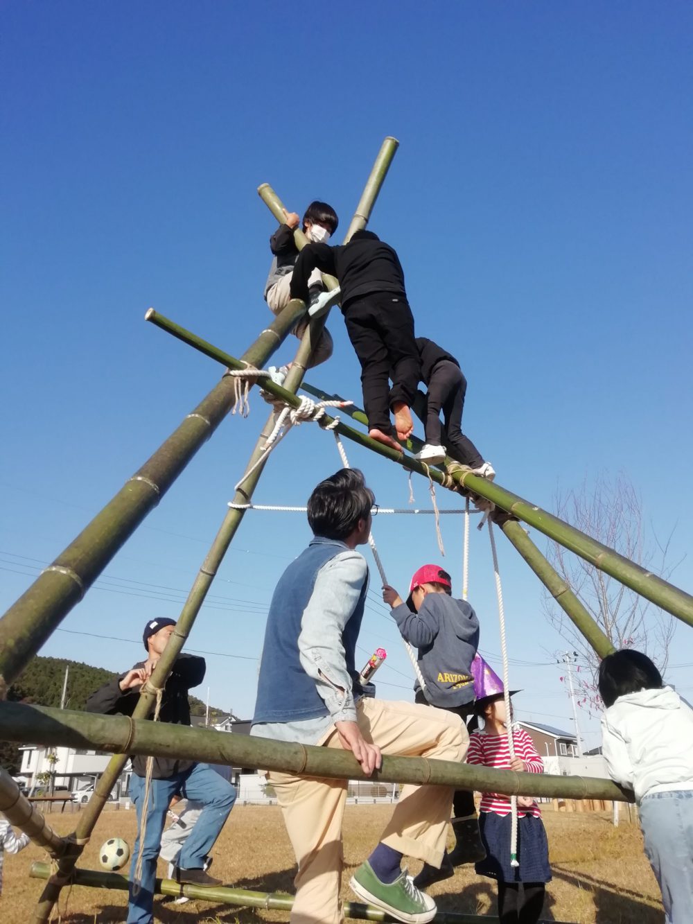 竹ジャングルジムはたのし~!