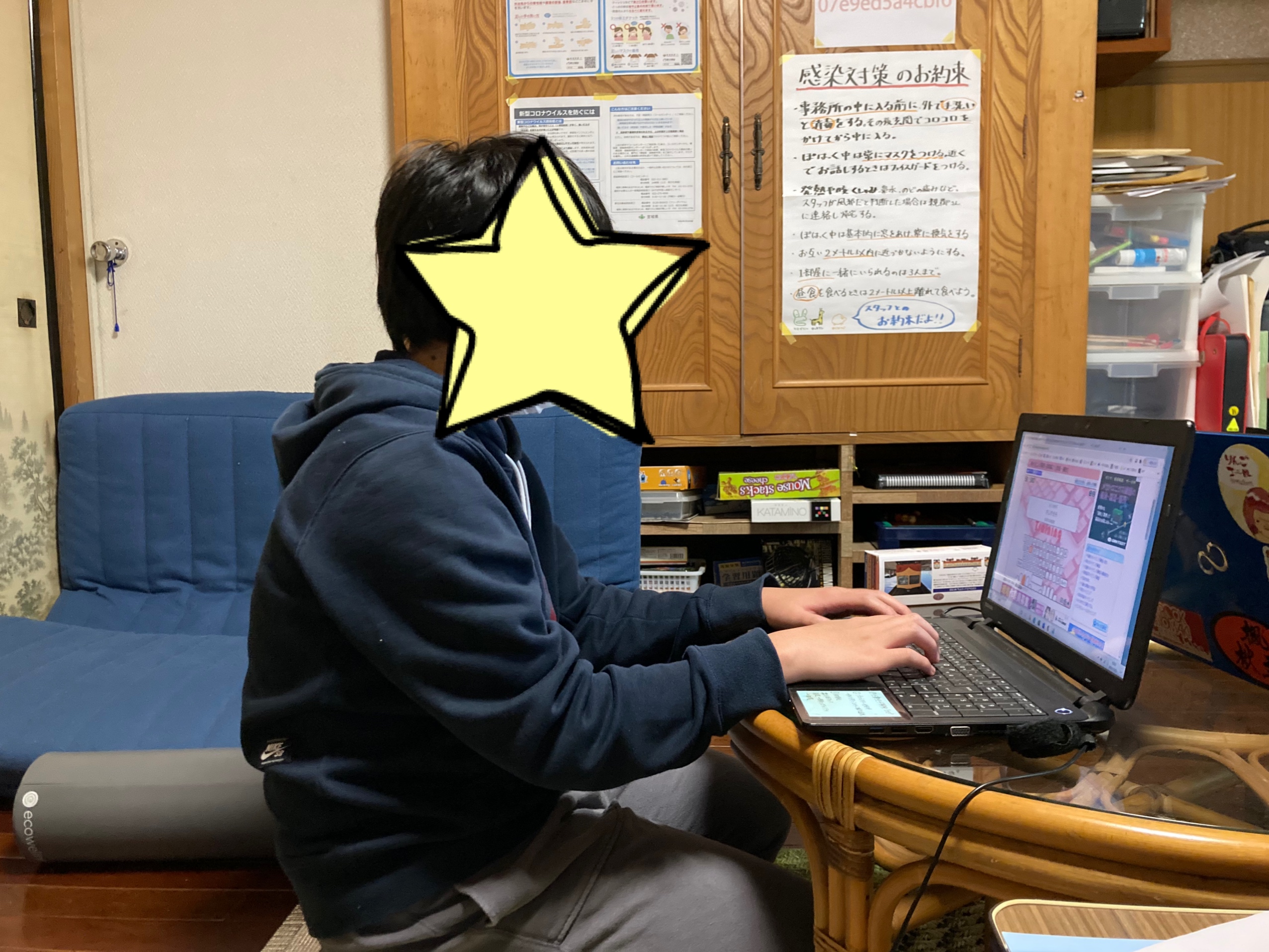 彼は、ブラインドタッチ練習用のサイトに向き合っていました。