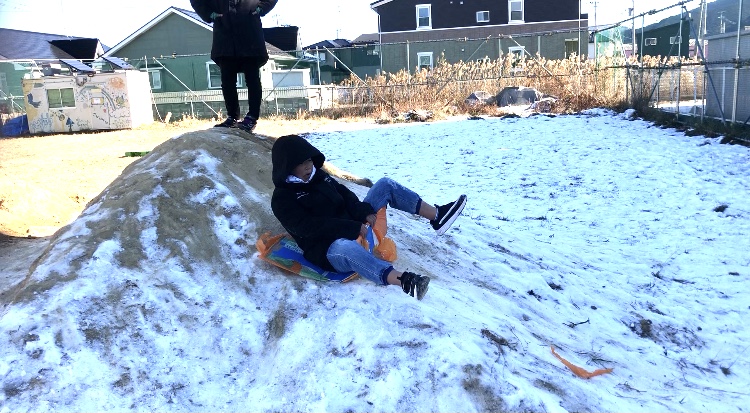 雪がなくなったら自分たちで雪をかき集めて楽しそうに何回も滑っていました♪