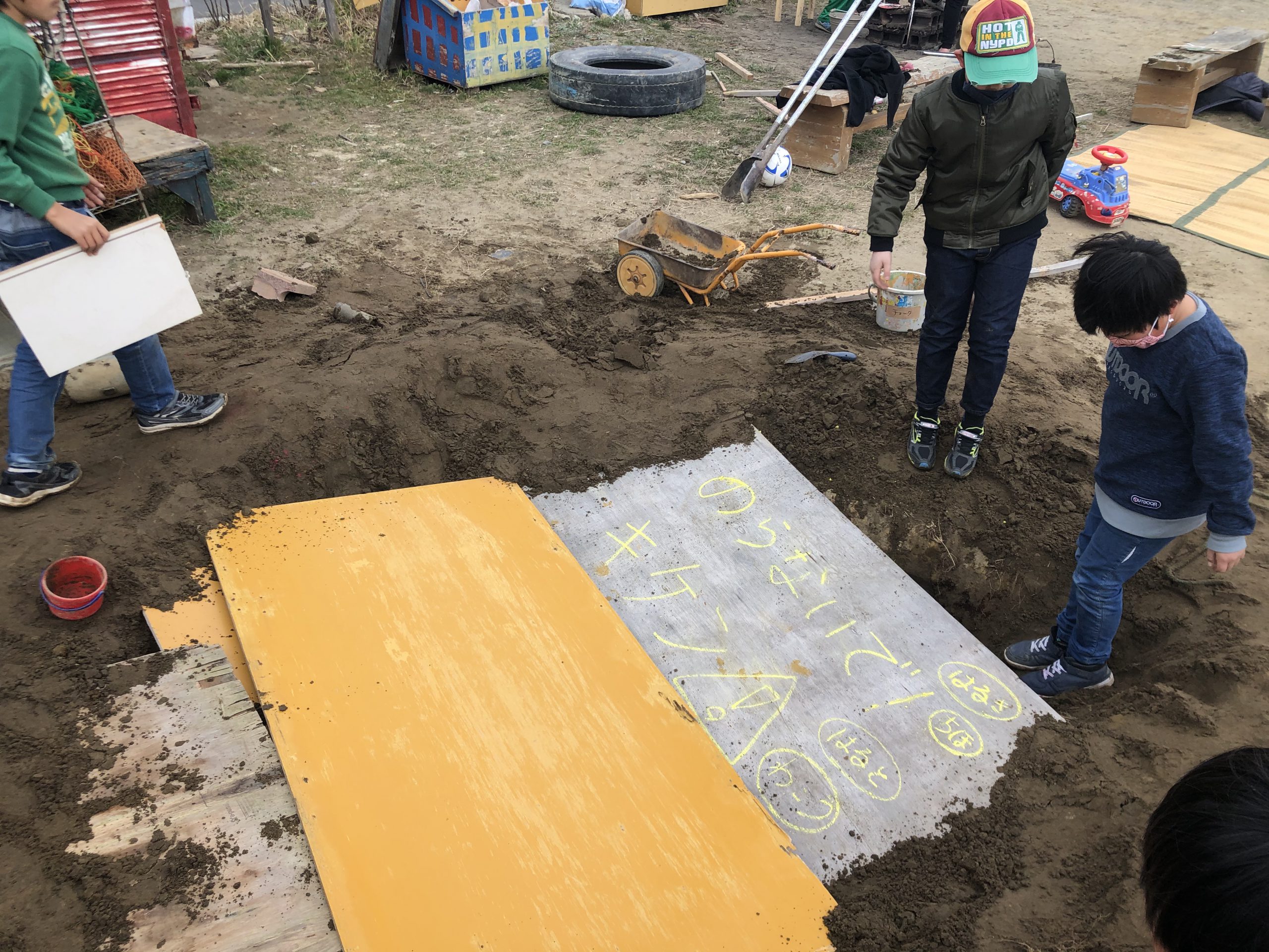 じゃあどうしようか!と子どもたちが考え出したのは地下に秘密基地を作ること。