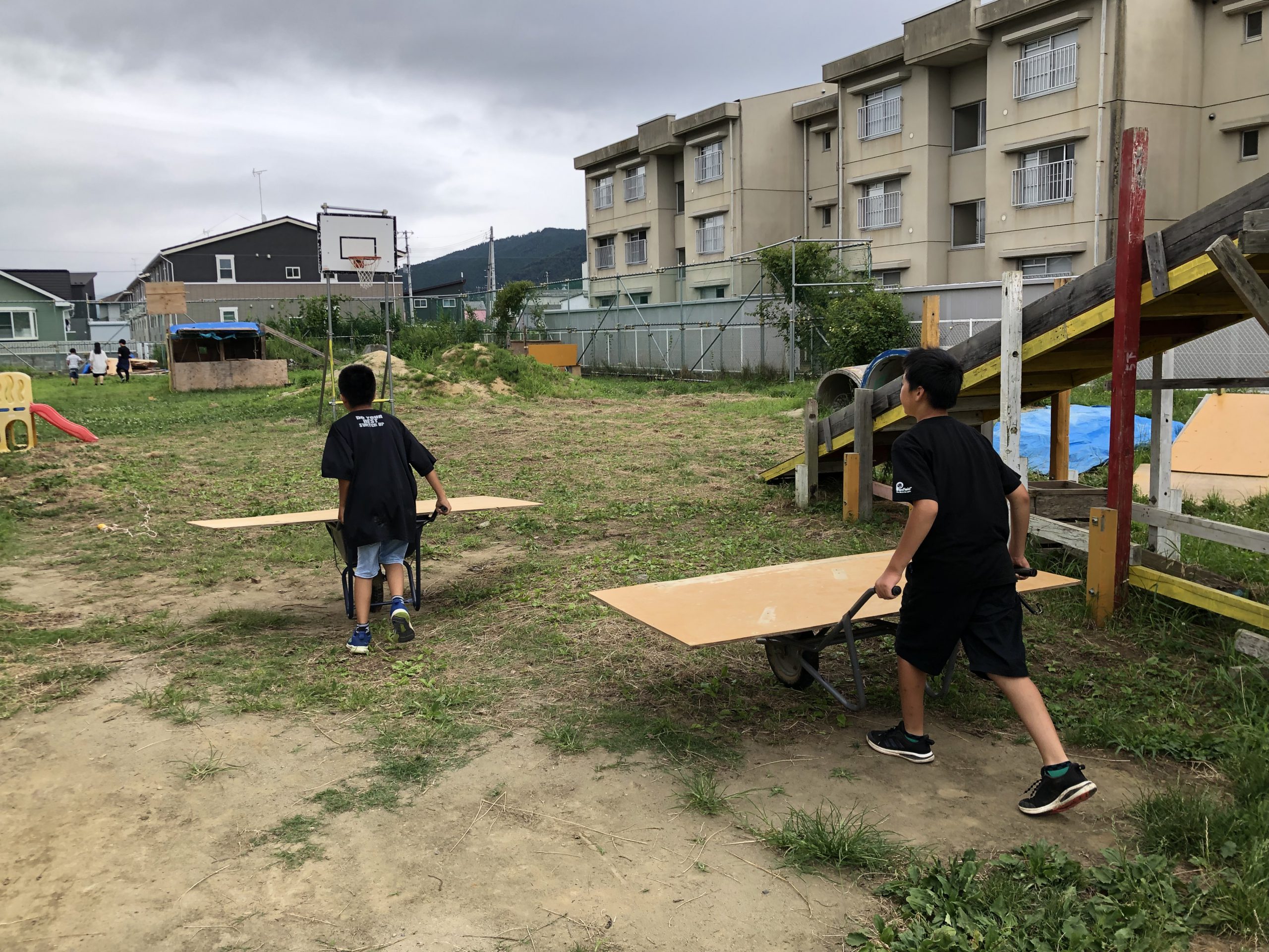 そして、できあがった遊具で未就学児が何度も楽しそうに遊んでいる様子を見て、「そんなに楽しいのかなぁ?」とH君は照れながらもとても嬉しそうな様子でした。